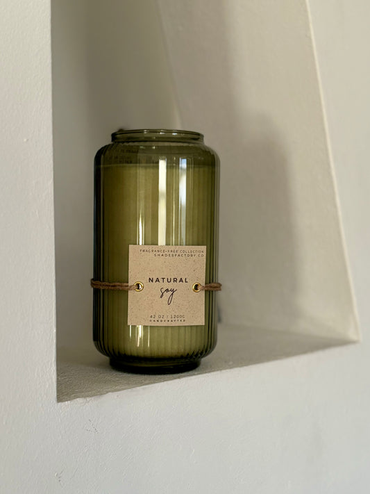 Large Unscented Candle 1200g - Candle in a Green Smoked Glass - Sustainable Premium Candle with Long Burn Time