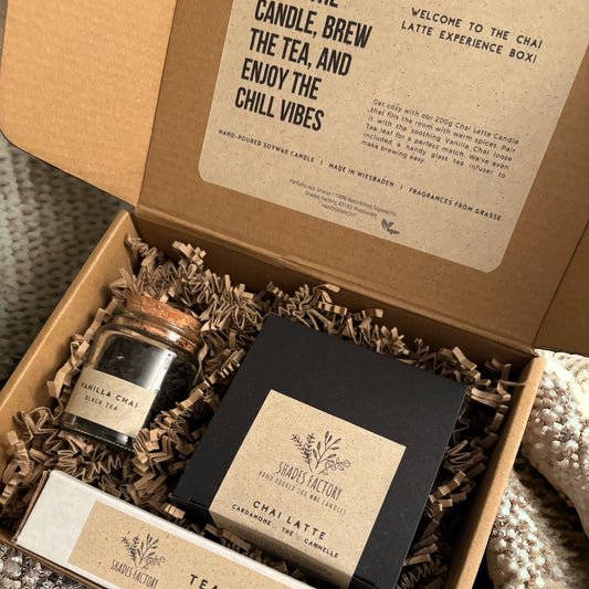 Chai Latte Gift Set I Chai Latte Candle + Vanilla Chai Tea Set + Glass Tea Infuser