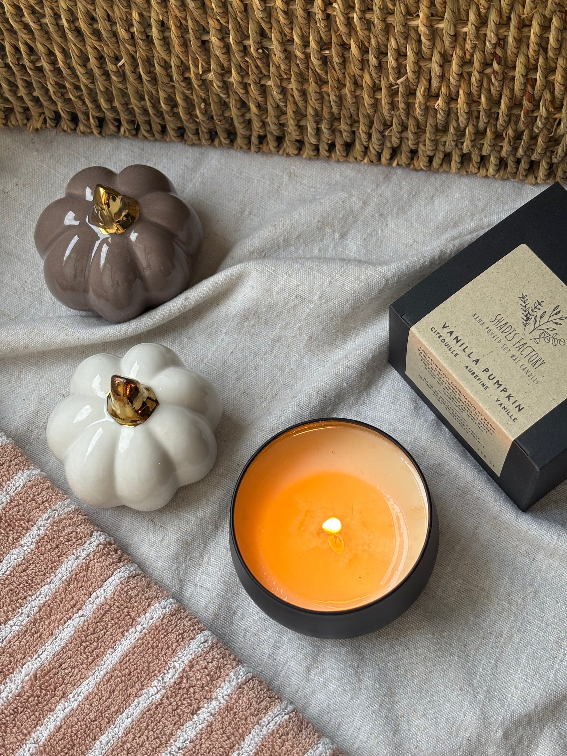 Verwandeln Sie Ihr Zuhause diesen Herbst in eine gemütliche Oase mit unsererVanille-Kürbis-Kerze, die die Essenz der Wintersaison einfängt. Diese handgefertigte Kerze mit der perfekten Balance aus süßer Vanille und würzigem Kürbis verströmt einen beruhigenden Duft, der Ihren Raum mit Wärme und Gemütlichkeit erfüllt.