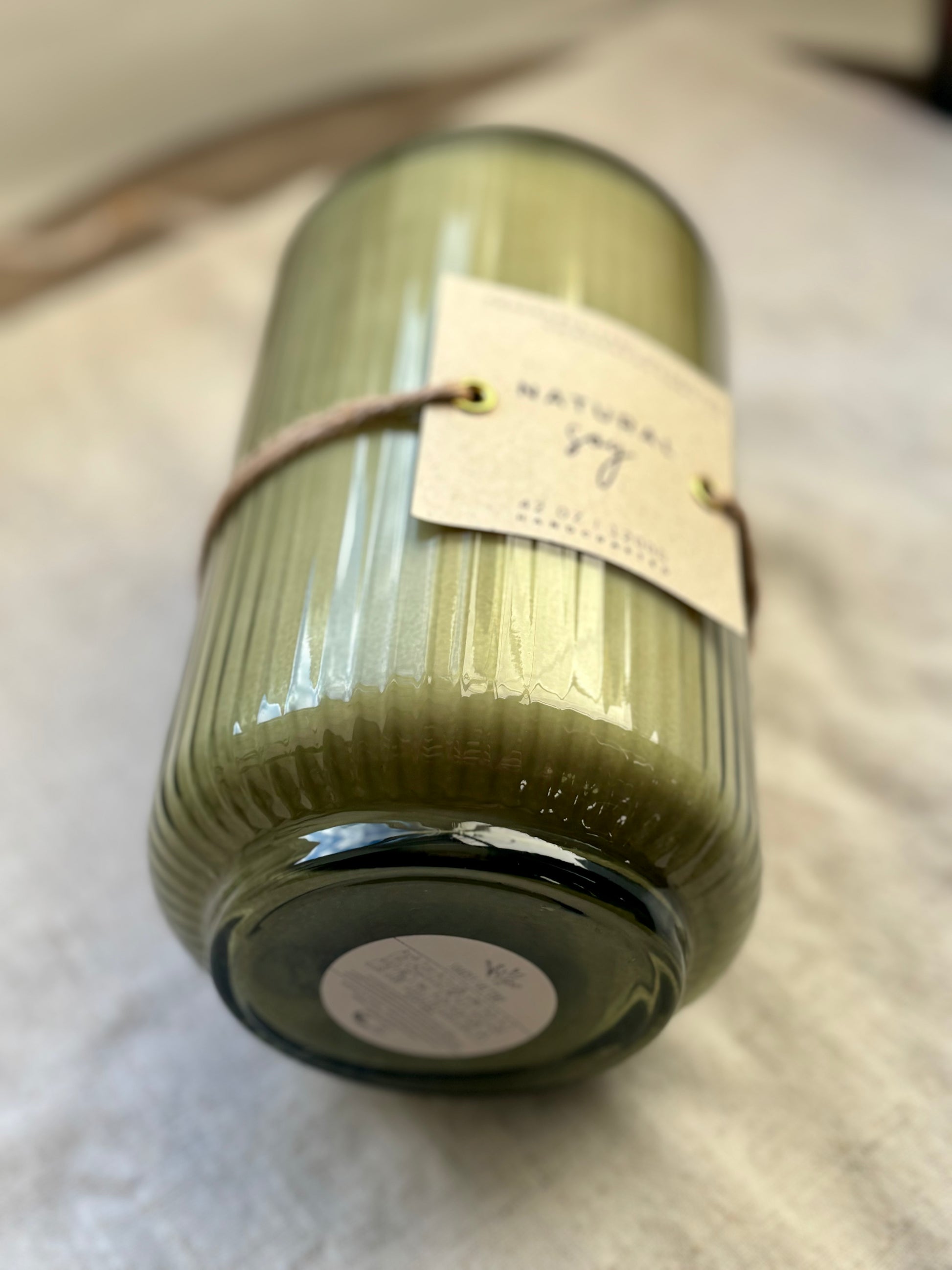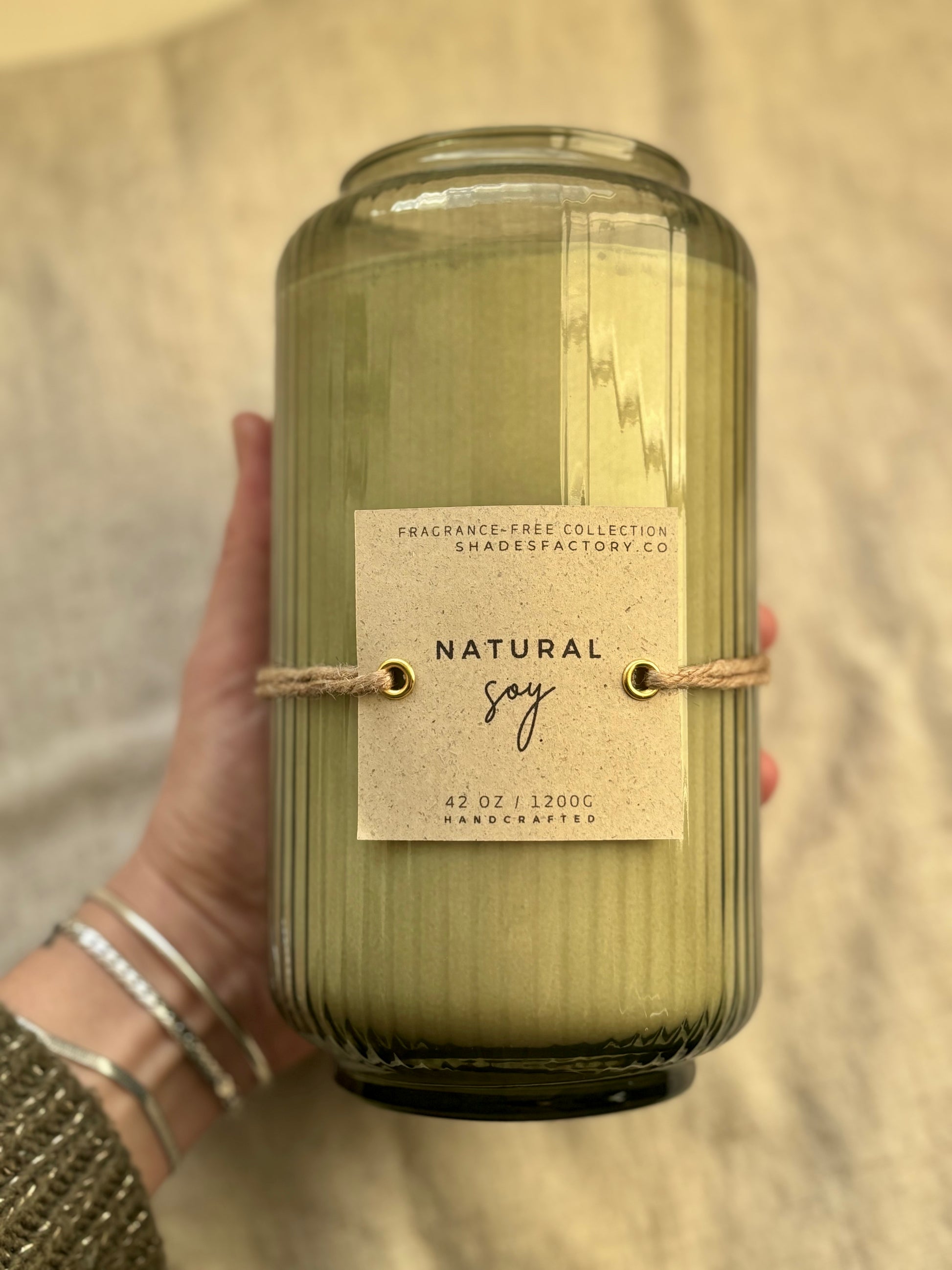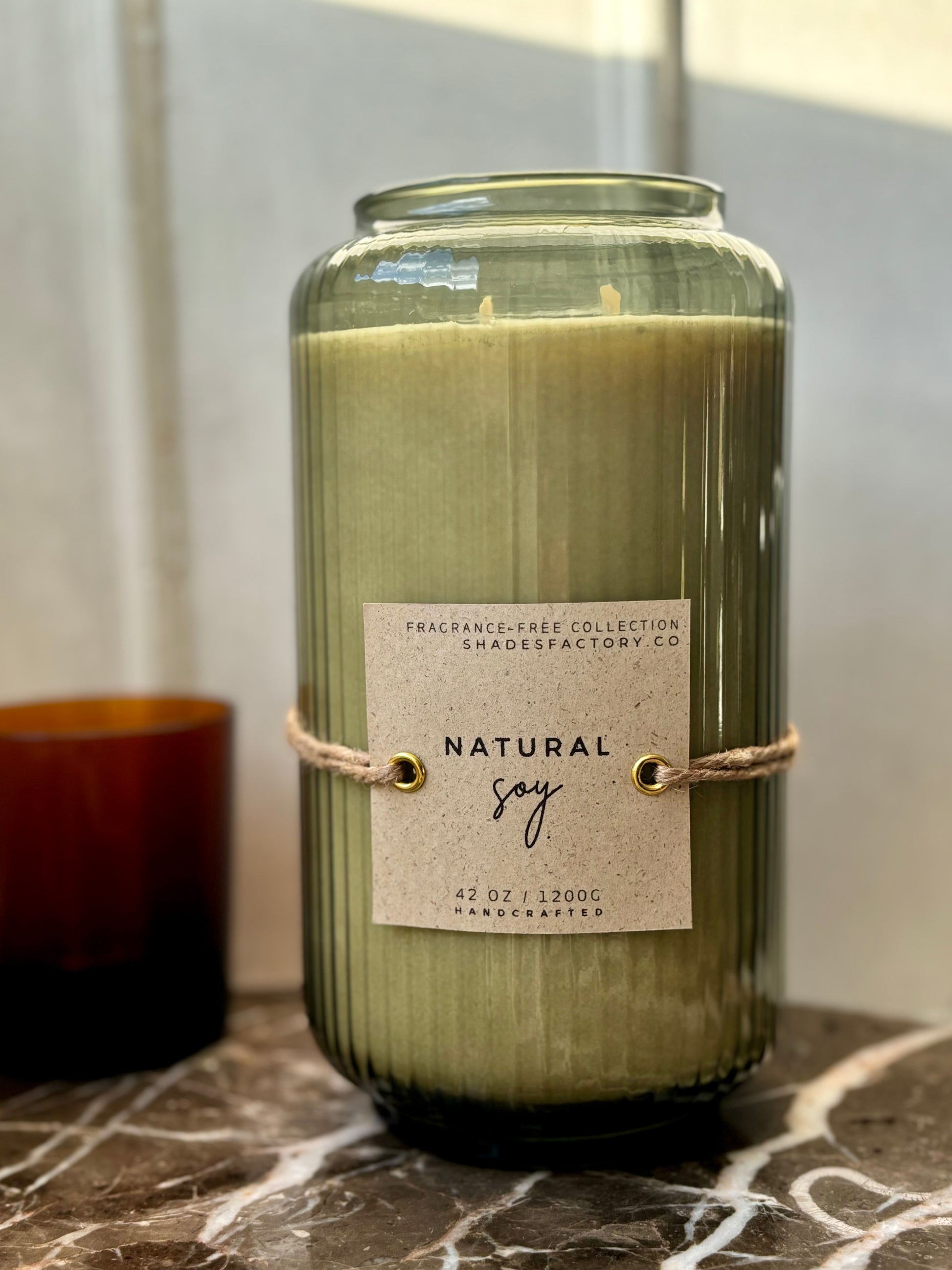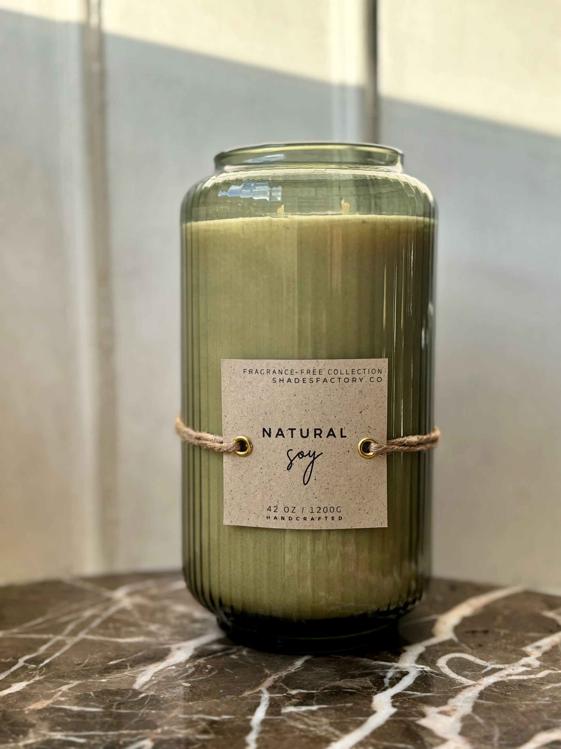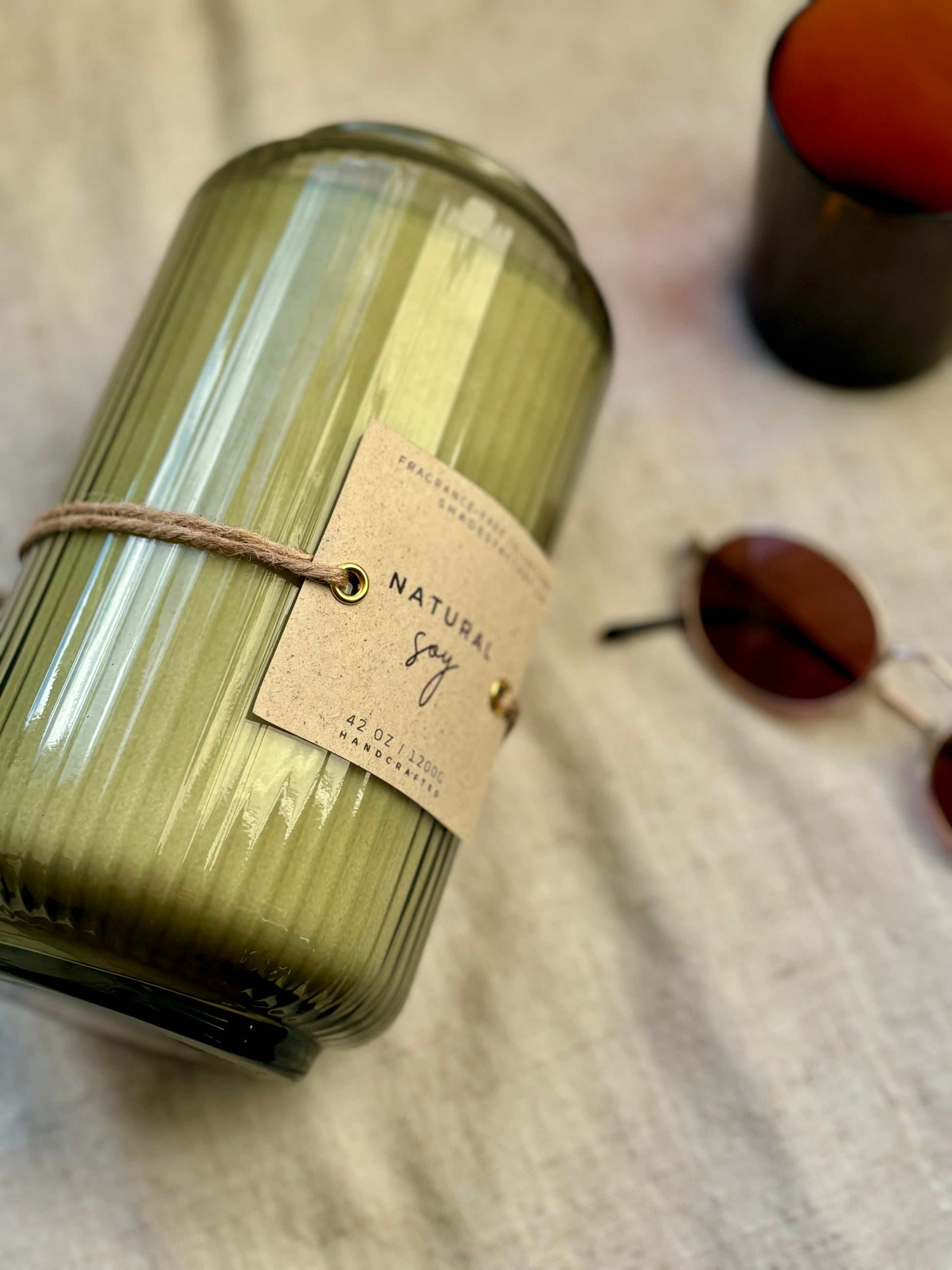 Large Unscented Candle 1200g - Candle in a Green Smoked Glass - Sustainable Premium Candle with Long Burn Time