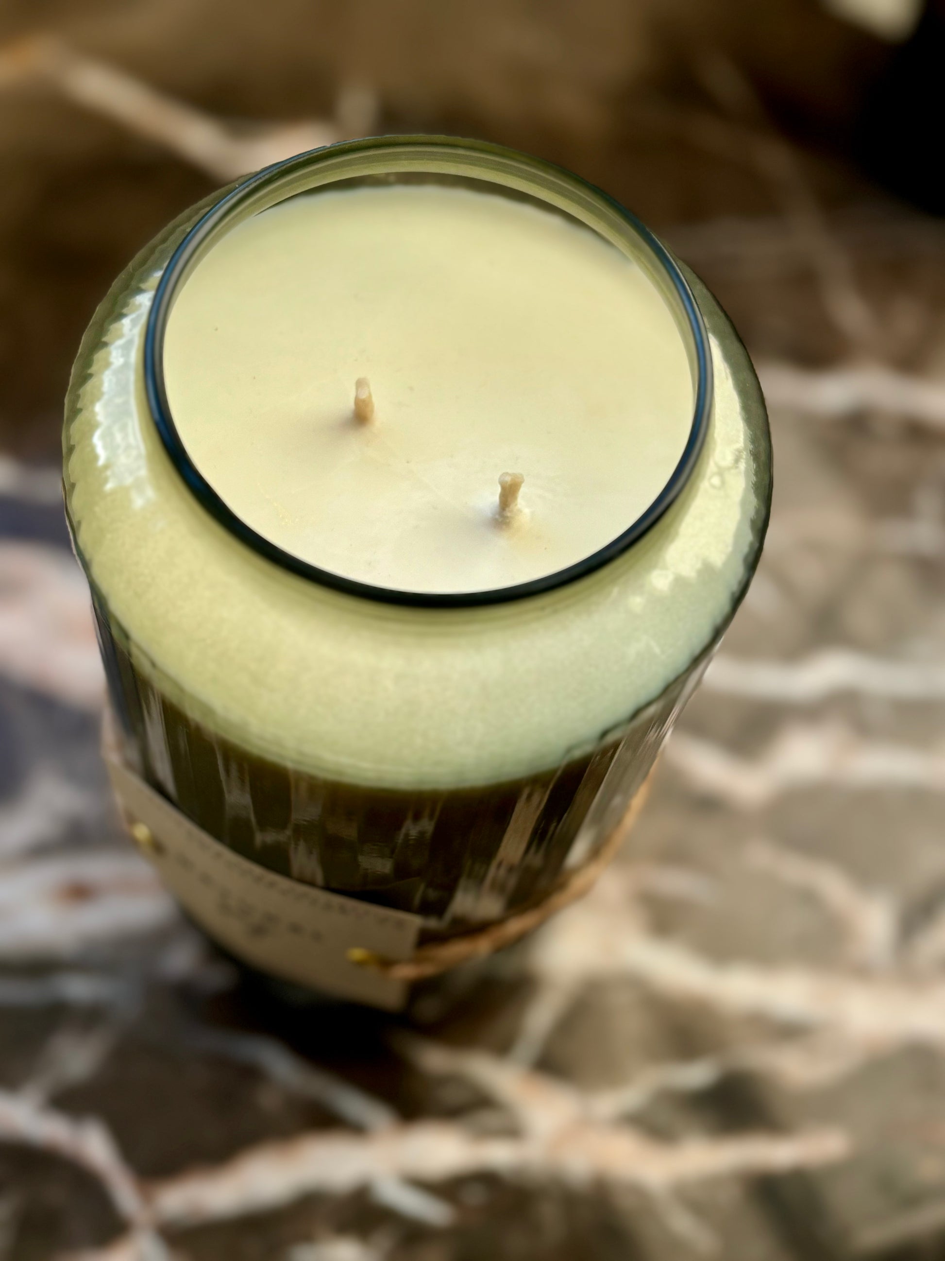 A refined, minimalist candle designed to elevate your space. With its XL size and dual wicks, it provides a soft, natural glow while serving as an elegant decorative piece.