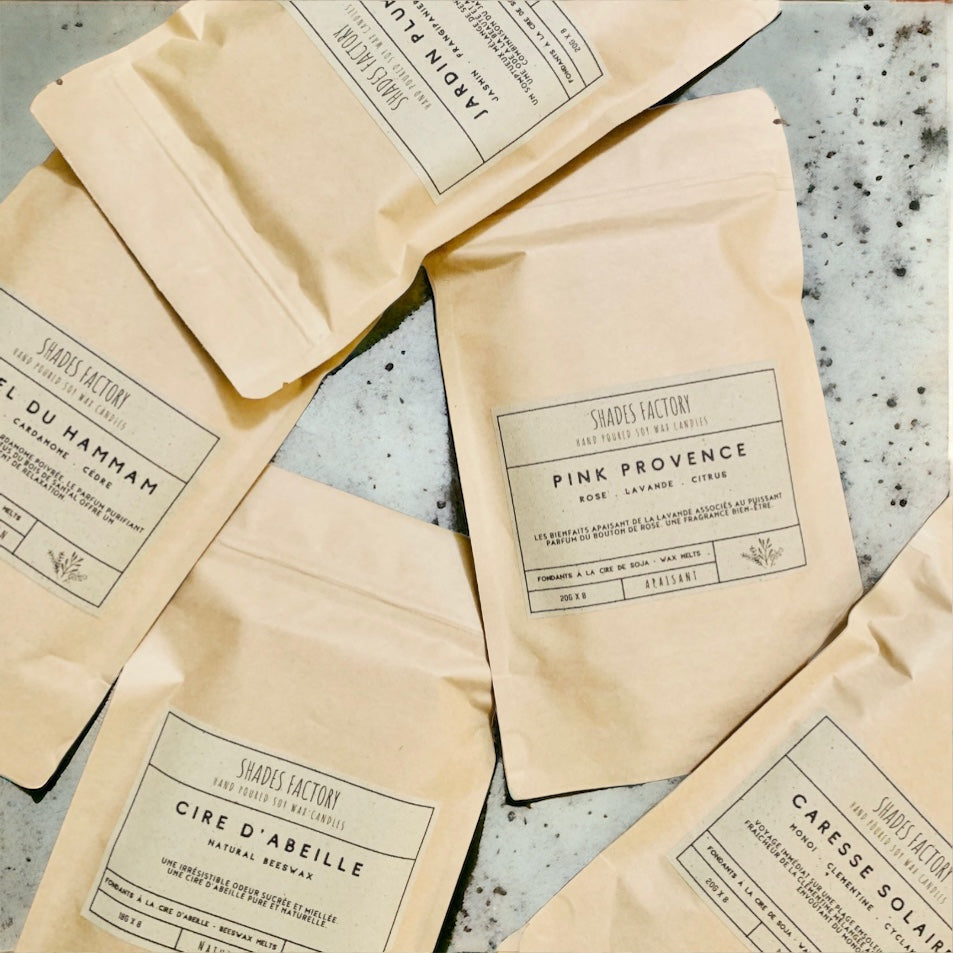 Crafted with care, our wax melts are infused with premium fragrance oils made in Grasse, the perfume capital of the world. Each melt releases an intense aroma, filling your space with an enchanting and long-lasting fragrance.